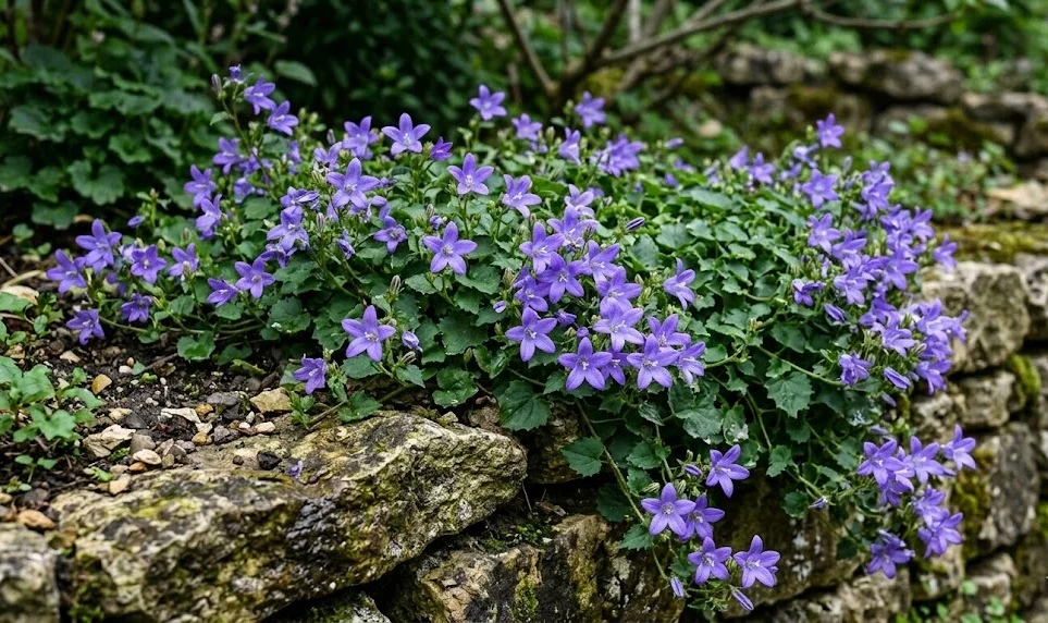 En el diseño de jardines, la campanilla dálmata se utiliza frecuentemente para suavizar las líneas duras de estructuras de piedra o cemento. Sus tallos flexibles se adaptan a las curvas y relieves, creando una transición natural entre la arquitectura y la naturaleza. Es ideal para cubrir esos espacios difíciles debajo de arbustos grandes donde el césped tradicional no suele prosperar bien. Su resistencia al tránsito ligero la hace apta para bordear senderos de piedra o caminos de jardín.