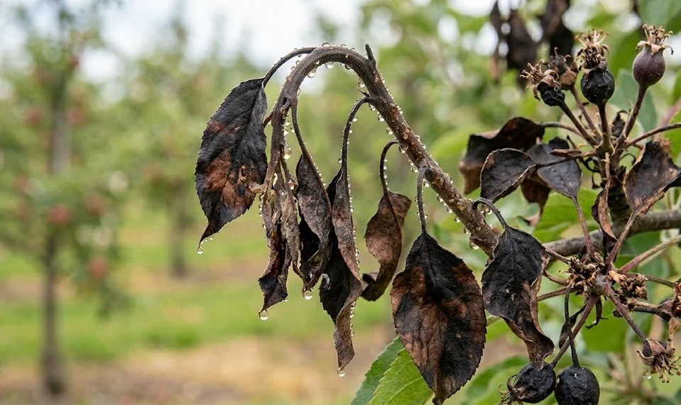 A polinização, embora essencial para a produção, representa um momento de vulnerabilidade extrema para a macieira. As flores são as portas de entrada mais comuns para a bactéria durante a fase de antese. O néctar acumulado serve como meio de cultura perfeito para a proliferação inicial das células bacterianas. Fenómenos meteorológicos como o granizo também criam feridas que permitem o acesso direto do patógeno aos tecidos internos.