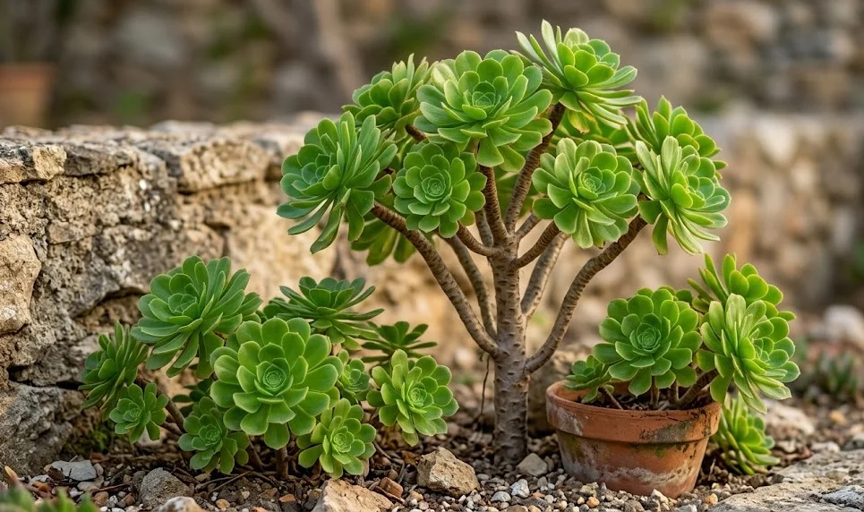 Ibland kan det hända att växten producerar fler skott än vad som är önskvärt för den form du vill uppnå i slutändan. Om det blir för trångt mellan de nya rosetterna kan du välja att gallra bort några av dem medan de fortfarande är små. Detta gör att den kvarvarande energin fokuseras på de skott du väljer att behålla, vilket resulterar i större och mer välformade rosetter. Att vara selektiv är en del av den konstnärliga processen i att forma en trädliknande suckulent över flera år.