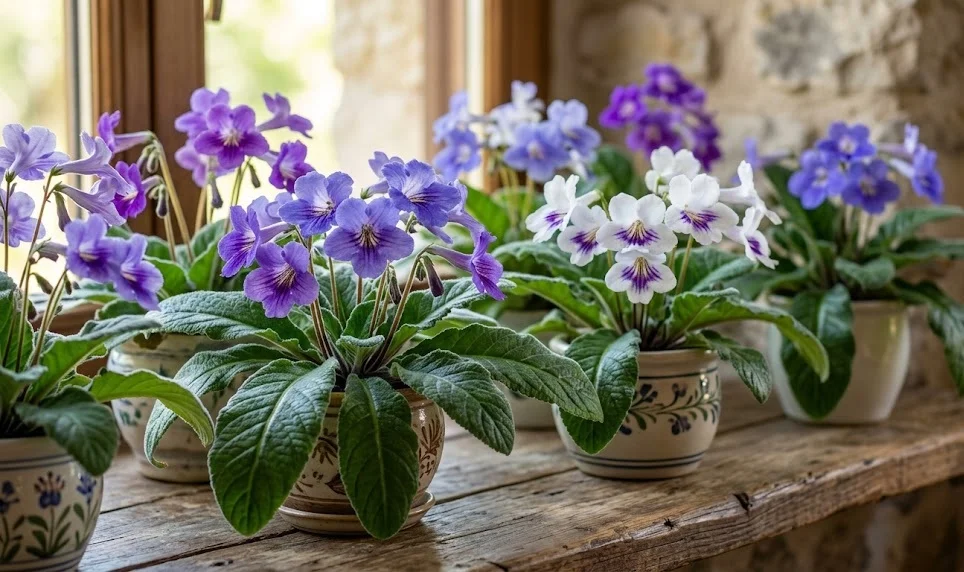 Eftersom dessa växter ofta lever i fuktiga miljöer i naturen uppskattar de en högre luftfuktighet än vad som normalt finns i svenska hem. Du kan enkelt höja luftfuktigheten genom att placera krukan på ett fat med lecakulor och vatten, utan att rötterna nuddar vattnet. Undvik att spraya direkt på de mjuka och håriga bladen då detta kan leda till fläckar och fula svampangrepp. En luftfuktare kan också vara en god investering om du har många plantor samlade på en och samma plats.